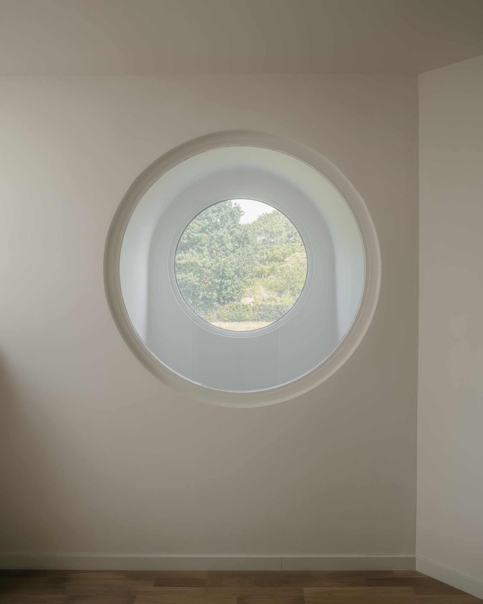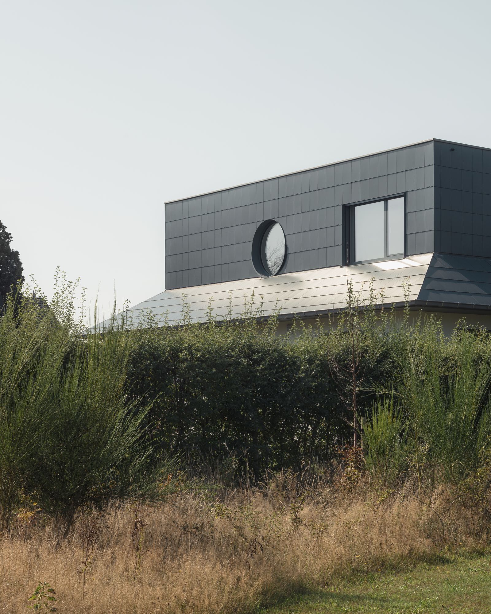 모자를 쓴 집은 FELT가 디자인한 벨기에 겐트에 위치한 미니멀한 주거 공간이다. 모자 모양의 2층을 포함하여 분리된 단독 주택을 FELT는 더 길게 만든다. 3개의 침실과 욕실은 집의 1층에 있다. 기발한 배럴 아치형 천장이 있는 이중 높이의 식사 공간이 두 층을 연결한다.
