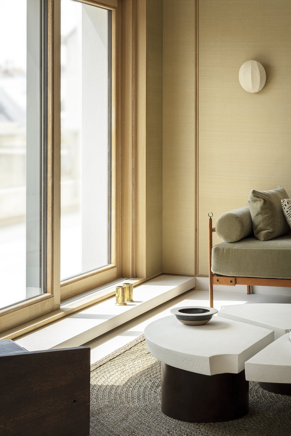 이 주택은 프랑스 파리에 위치한 미니멀한 공간이다. 부드럽고 중성적인 톤과 따뜻한 미니멀리즘 텍스처를 제공하는 오크 패널 벽으로 공간을 장식한다. 2층 아파트 전체에 천연 소재가 사용되어 빈티지한 가구와 현대적인 가구가 조화를 이루고 있다. 이공간은 에펠탑을 향하고 있는 대형 유리창으로 인해 주요 생활 공간에 풍부한 자연 채광을 제공하여 공기가 잘 통하고 가벼운 느낌을 준다.