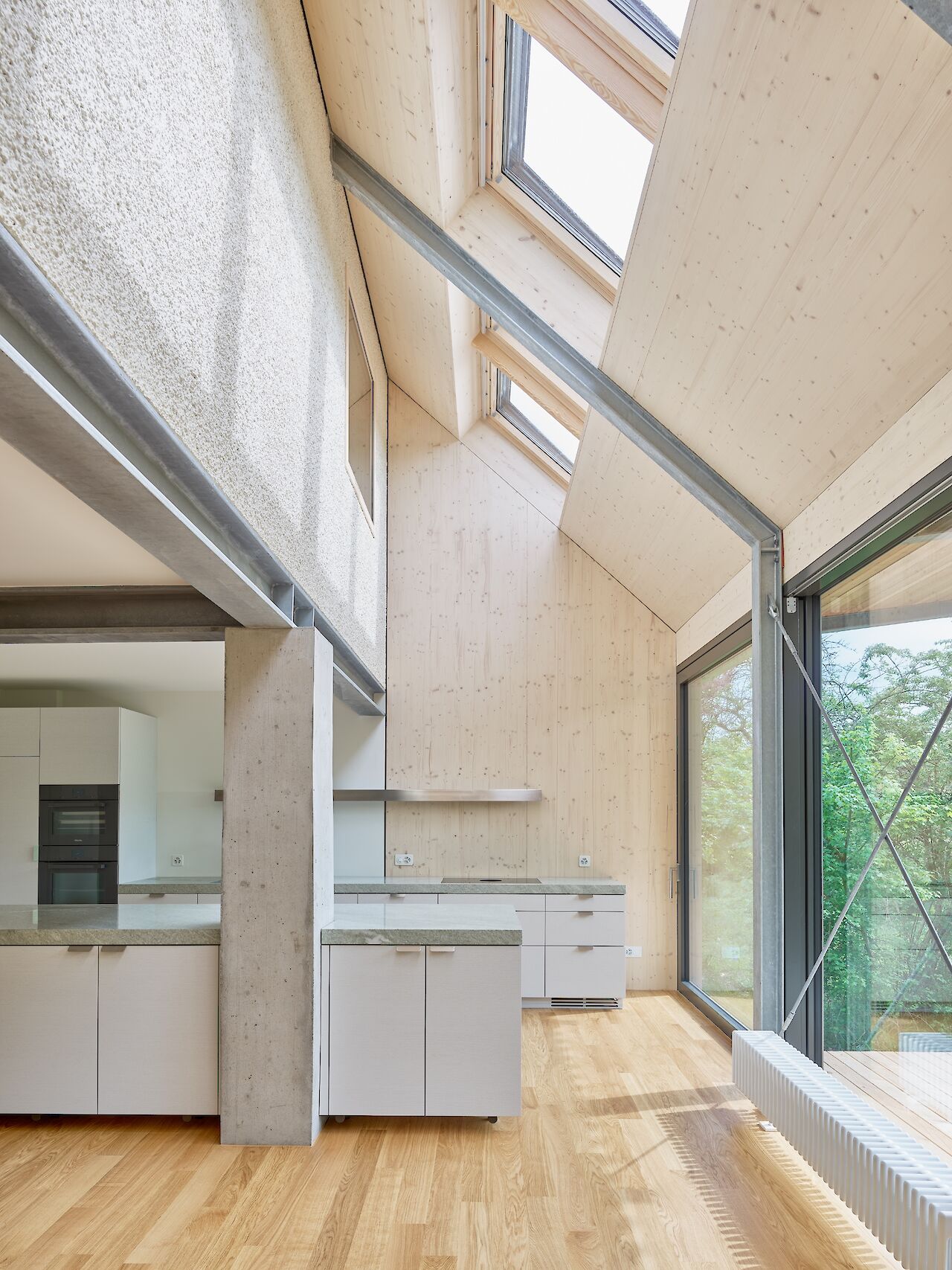 이 주택은 스위스 바젤에 위치하고 있다. 발코니를 확장한 주택은 철골과 목재로 구성되어 있다. 확장되어진 박공지붕에는 채광창을 추가하여 내부 깊숙히 자연채광을 유도하였다.