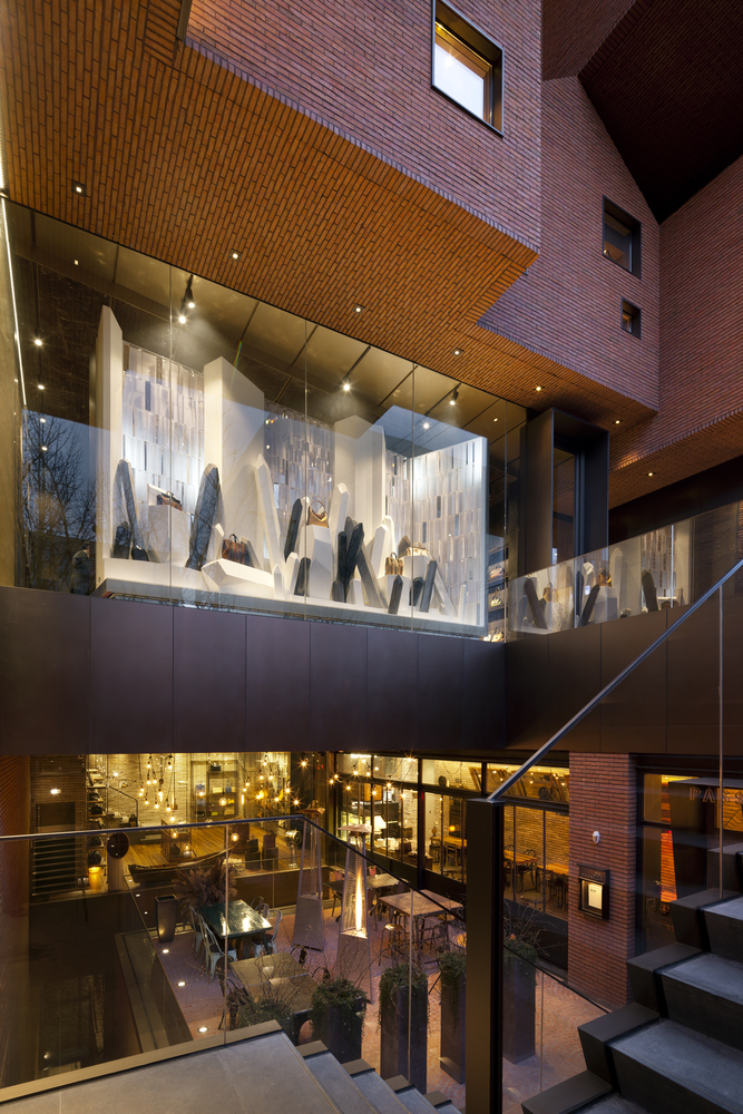 내부는 상점, 카페, 레스토랑, 갤러리 등으로 구성됩니다. 특히 지하의 다층 광장은 장인, 디자이너, 고객이 소통하는 장소로, 이곳으로 향하는 벽돌 계단은 패션쇼 런웨이로 활용됩니다. 건물의 최상층인 옥상은 얕은 물과 억새가 어우러진 정원 속 빌라처럼 디자인되어 도심 속 휴식을 제공합니다. 결과적으로 0914 플래그십 스토어는 과거의 제조 역량과 미래의 디자인 에너지가 만나는 창조적 중심지로서 기능합니다.